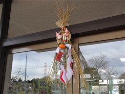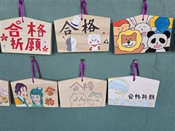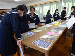 生徒は、合格祈願のダルマや、美術で作成した合格祈願の絵馬を掲示しました。