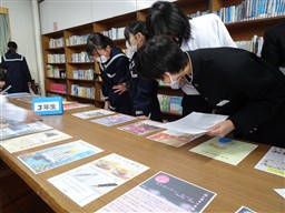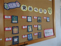 12月後半から、赤と白の本を集めて、紅白歌合戦ならぬ「紅白本合戦」の展示がされています。また、毎月、貸出ランキングを更新し、生徒が本に興味を持てるような掲示を作ってくれています。
