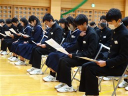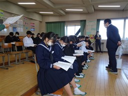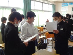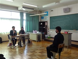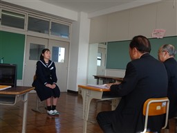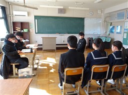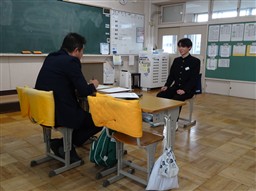 3年生が、地域の方に協力していただき、面接練習を行いました。普段よく知っている教職員以外との面接練習は、かなり緊張したようですが、本番に向けてよい練習機会となりました。来週の本番に向けて、今日の指導を生かしてほしいと思います。