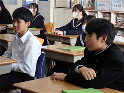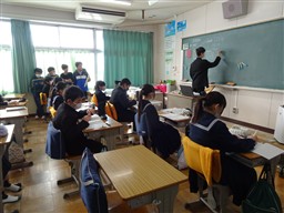 小中連携の取り組みの一つとして、今年度は、小学校6年生が、中学校1年生の授業を参観に来ました。