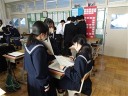 3年生は、「初恋」を教材とした学習に取り組んでいます。今日は、「りんご」からイメージすることについて、意見交流をしていました。色や味だけでなく、地理や料理、キャラクターや有名人、有名企業など生徒のイメージはとても広くて興味深かったです。