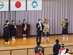 今年は、吹奏楽部が、校歌の伴奏を行いました。