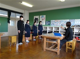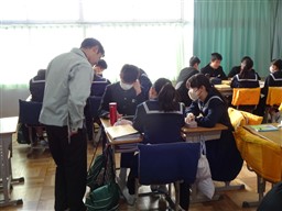 私立入試まで2週間となりました。3年生の合格を目指して、今日は、級外職員による面接練習を行いました。事前に想定質問に対する答えを考えていたようですが、かなり緊張してうまく返答できない場面もあったようです。次回は、地域の方に協力していただき、学校職員以外の方に面接練習をしていただく予定です。