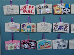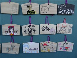 私立高校受験まであと18日。廊下には合格祈願の絵馬が並んでいます。