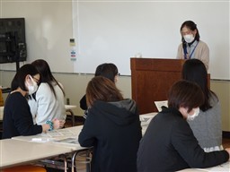 1年生がキャリア教育の一環として、「福祉のお仕事魅力発見セミナー」を行いました。介護士や保育士の方に来ていただき、仕事内容や仕事の魅力などについて話をしていただきました。