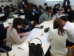2年生の親子進路学習会を行いました。近隣の高校の先生方から説明をしていただき、進路決定に向けての知識を深めることができたようです。