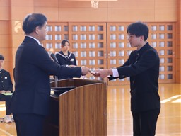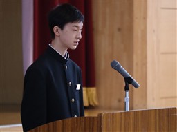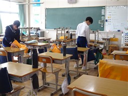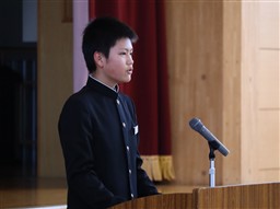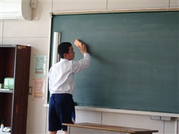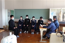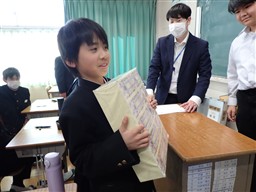2年の理科では、竜巻発生の時の天気図等の資料から、竜巻発生の理由を考え、グループの代表者が発表していました。