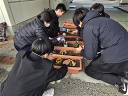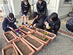 B組の生活単元の学習では、プランターに花を植える作業を行っていました。