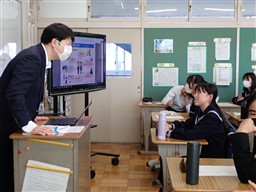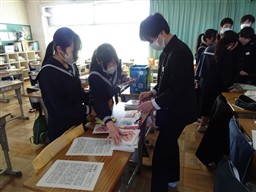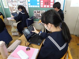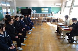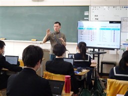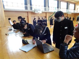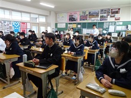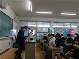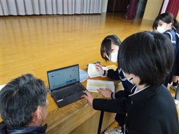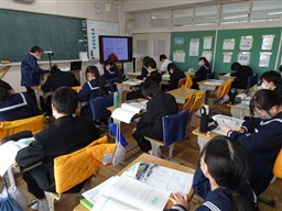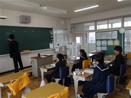12/17に、大学教授を講師にお招きした授業研究会を行いました。講師の先生は、本校に長く関わってくださっており、本校の生徒の学習の様子をいつも高く評価してくださっています。講師の先生に見ていただいた授業の様子を写真で紹介します。