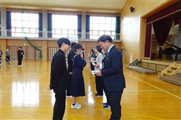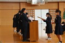 1年の英語科では、身振り手振りを交えて英語で相手に伝える学習を行っていました。