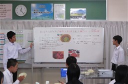 給食時間には、総合文化部の2人が、今日と24日の給食に自分たちが漬けた梅干しと赤じそを使用した給食が登場することや、梅干しの作り方などを発表し、おいしく食べてほしいという想いを全校に届けました。