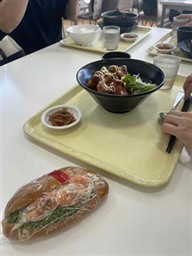 そして、お昼のお楽しみはカフェテリアです。丼ものや麺類、定食が安価で食べられます。ヤタローパンのパンもたくさんあり、私たちも学生に紛れて美味しく頂いてきました。