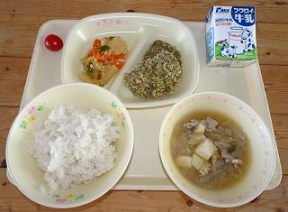 *** ふるさと給食 *** 麦ごはん 牛乳