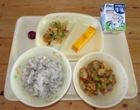 *** 牧中 恵みの給食 *** しらすゆかりご飯 牛乳