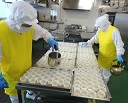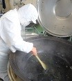 ***給食室の様子*** 今日は約300食の手作り梅ゼリーです。”アガー”というゼリーやプリンなどを固める食材を使用して作ります。十分に水に溶かさないと固まらない危険性があるので、慎重に慎重を重ねての調理で、ちゃんと固まったことを確認できたときはホッとしました♪