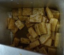 今日の主菜は『いかのハーブ焼き』です。いかの切身を、バジルやオレガノ、パセリなどのハーブ類とオリーブオイルやワイン、すりおろしたニンニクを混ぜたものに漬け込み焼きました。給食室で初めて作る料理なので、上手に焼けるかどうか朝からドキドキ不安いっぱいでした。