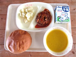 正解は①100種類です。日本には4,000~5,000種類のきのこがあり、その内、食べられるきのこは約100種類ほどといわれています。スーパーなどに出回るきのこは、さらに少なく15種類ほどだそうです。今日のハンバーグは、えのきたけ、ぶなしめじ、エリンギの3種類のきのこを使ったソースをかけました。