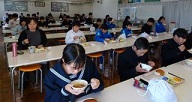 ***給食時間の様子*** 11/7より縦割り給食から、学年単位の給食に変わりました。11/7~は1,3年生がランチルーム、2年生が教室、今週から1,2年生がランチルーム、3年生が教室で給食を食べています。