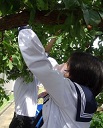 ランチルーム前のプラムの木に実がたくさんつき、食べ頃の色づきになってきました。昨日、総合文化部3年生で収穫をし、たくさんのプラムを収穫することができました。今日は、収穫したプラムを給食に取り入れた『牧中 恵みの給食』になりました。