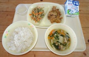 今日の給食にはキムチが使われています。キムチは、朝鮮半島で生まれた辛みのある漬物のことをいいます。塩や唐辛子などの調味料を使い、白菜などの野菜を一緒に漬込んでつくります。キムチには食欲を増進させる働きがあります。白菜を使った定番の”白菜キムチ”、角切りにした大根でつくる”カクテキ”、きゅうりでつくる”オイキムチ”など、食材の種類や形、使われる調味料類の種類と使い方によって、187種類あるといわれています。食欲を増してくれるキムチですが、塩分を多く含むので食べすぎには注意が必要です。