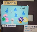 B組が季節の掲示を制作してくれました。一つ一つの作品に顔が描かれていて、それがとてもかわいいです。雨で気持ちも沈みがちになりがちですが、明るくかわいい掲示に気持ちが癒やされます。