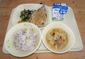 6月11日は「入梅」です。みなさんは「入梅」という言葉を知っていますか?「入梅」は日本独自の暦の中で使われている言葉で、「暦の上で、梅雨が始まるとされている日」のことをいいます。ちょうど、梅の実がなる時期と同じ頃に長雨が続くので、「梅の雨」と書いて「つゆ」と読みます。今日は、この「入梅」にちなんで、牧中生がつくった梅干しを使い、梅ごはんにしました。また、この時期にとれる”いわし”は、脂がのっていて一番おいしいといわれています。今日はかば焼きにしました。季節の味を味わいましょう。