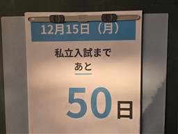 私立入試まであと50日。3年生の教室には、入試に向けたカウントダウンカレンダーが掲示してあります。