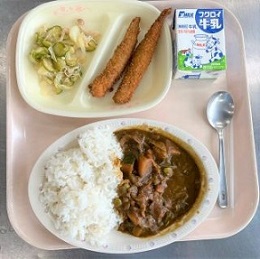 今日、8月31日は「野菜」の日です。みなさんは一日に必要な野菜の量がどのくらいか知っていますか?子供では、一日290~300g、大人では350gの野菜を食べる必要があるといわれています。野菜には、ビタミンやミネラル、食物繊維などの栄養がたくさん含まれていて、体の調子を整える働きがあります。給食でも、必ず、野菜料理が登場します。給食の献立を考えるとき、一食で約100gくらいの野菜を食べることができるように工夫しています。今日の給食にも、たくさんの種類の野菜が使われています。