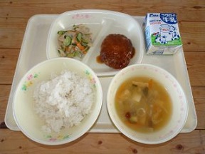 秋の味覚の一つにきのこがあります。日本は雨が多く、気温の高い時期もあるので、きのこの生育にはとても適した環境です。そのため、たくさんの種類のきのこがあり、名前がついている物だけでも1,500種類くらいあるそうです。きのこには、骨を強くするのに大切なビタミンDやお腹の調子を整える食物繊維などがたくさん含まれています。今日は、9月から11月が旬の、ツルッとしたぬめりの食感が特徴の「なめこ」が入ったみそ汁です。秋の味覚を味わいましょう。