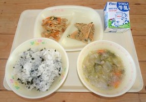 *** 正月・鏡開きにちなんだ献立 *** わかめご飯 牛乳