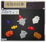 今月の行事の掲示が、10月31日のハロウィンにちなんだ掲示に変わりました♪