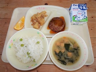 グリンピースごはん 牛乳