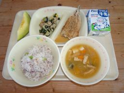 7月30日は「土用の丑」の日です。古くから土用の丑の日に「う」のつく、うなぎ、うどん、うめぼし、うりなどを食べると、暑さ負けしないという言い伝えがあります。特に、うなぎは栄養価が高いので、暑い夏を乗り切るために、江戸時代のころから土用の丑の日に食べられてきました。給食では、うなぎに負けないくらい栄養たっぷりの、「いわし」をかば焼きにしました。もうすぐ夏休みですね。暑い夏を元気にすごす『4つのポイント』を紹介します。①朝ごはんを必ず食べる。②夏野菜を毎日食べる。③こまめに水分をとる。④冷たいものやおかしの食べすぎに注意、です。これらに注意して、楽しい夏休みにしてください。