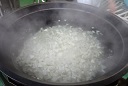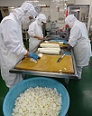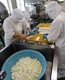 ☆給食室の様子☆ 今日の主菜は、大根がメインの『豚肉と大根の炒め煮』です。約28kg近くの大根を少し厚めのいちょう切りにしました。少しえぐみのある大根だったので、煮る前に下茹でしてから煮ました。