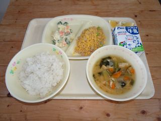 <キャロット通信より 生徒からのメッセージを紹介します >〔1A〕とりそぼろがおいしかったです。ニューサマーグリーンは甘くて、6個も食べました♪