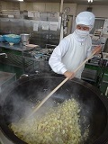 ☆給食室の様子☆ ジャーマンポテト、ライ麦、レンズ豆・・・と、ドイツにちなんだ料理や食材が使われた給食でした。ジャーマンポテトは、約300人分の料理を一気につくるので、出来上がりがきれいに仕上がるよう、あらかじめじゃがいもを茹でるなど、工夫しています。