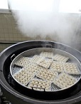 しゅうまいが、中心まで確実に加熱ができているか、温度計で確認をします。