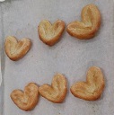 今日は、今までと比べて調理室内の室温が高いため、パイ生地に含まれるバターが溶け出して生地がだらけてしまい、少しふくよかなハートになりました。