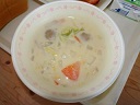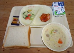 今日のクリームシチューには、たくさんの白菜を使っています。白菜は、今から100年くらい前に中国から日本へ伝わりました。戦争で中国に行っていた兵士たちが、その大きさや味の良さに感心して種を持ち帰り、全国で作られるようになったそうです。白菜には、風邪を予防する栄養がたくさん含まれています。また、寒くなるにつれて甘みが増して、おいしくなる特徴があります。あっさりした味わいなので、漬け物や煮物、汁物、炒め料理、鍋料理など、いろいろな料理に合う、これからが旬の野菜です。積極的に食べて、かぜに負けない身体をつくりましょう。