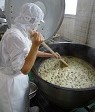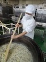 ***給食室の様子*** 今日のクリームシチューを担当した調理員さんは、初めてのシチューづくりで、朝からドキドキ・・・、上手にできるかな?焦げないようにできるかな?時間通りにできるかな?たくさん煮込めるかな?と、不安がいっぱいだったそうです。仲間の温かな支えにより無事にできあがり、味見をしたときに見せた顔は、とても輝いたステキな笑顔でした。